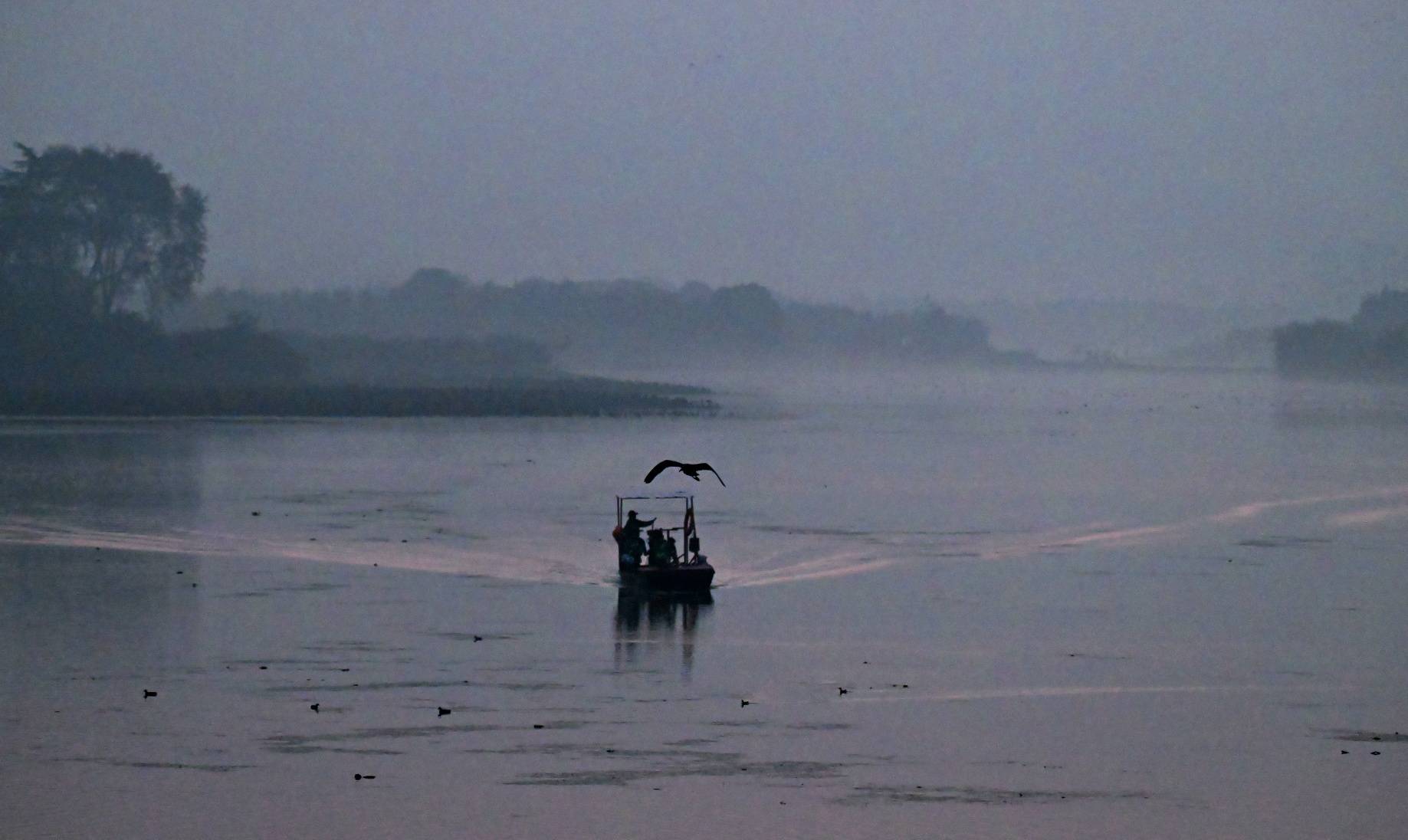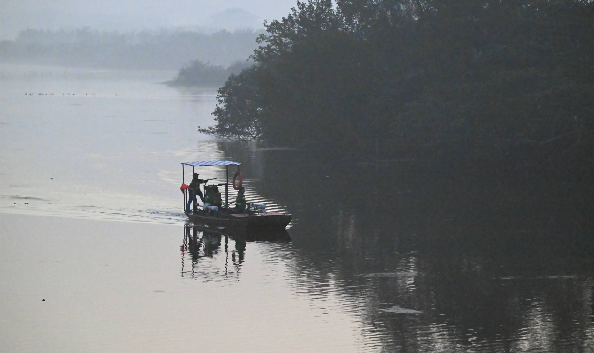 孤舟寒夜渡长江,赏花赏月赏秋香。